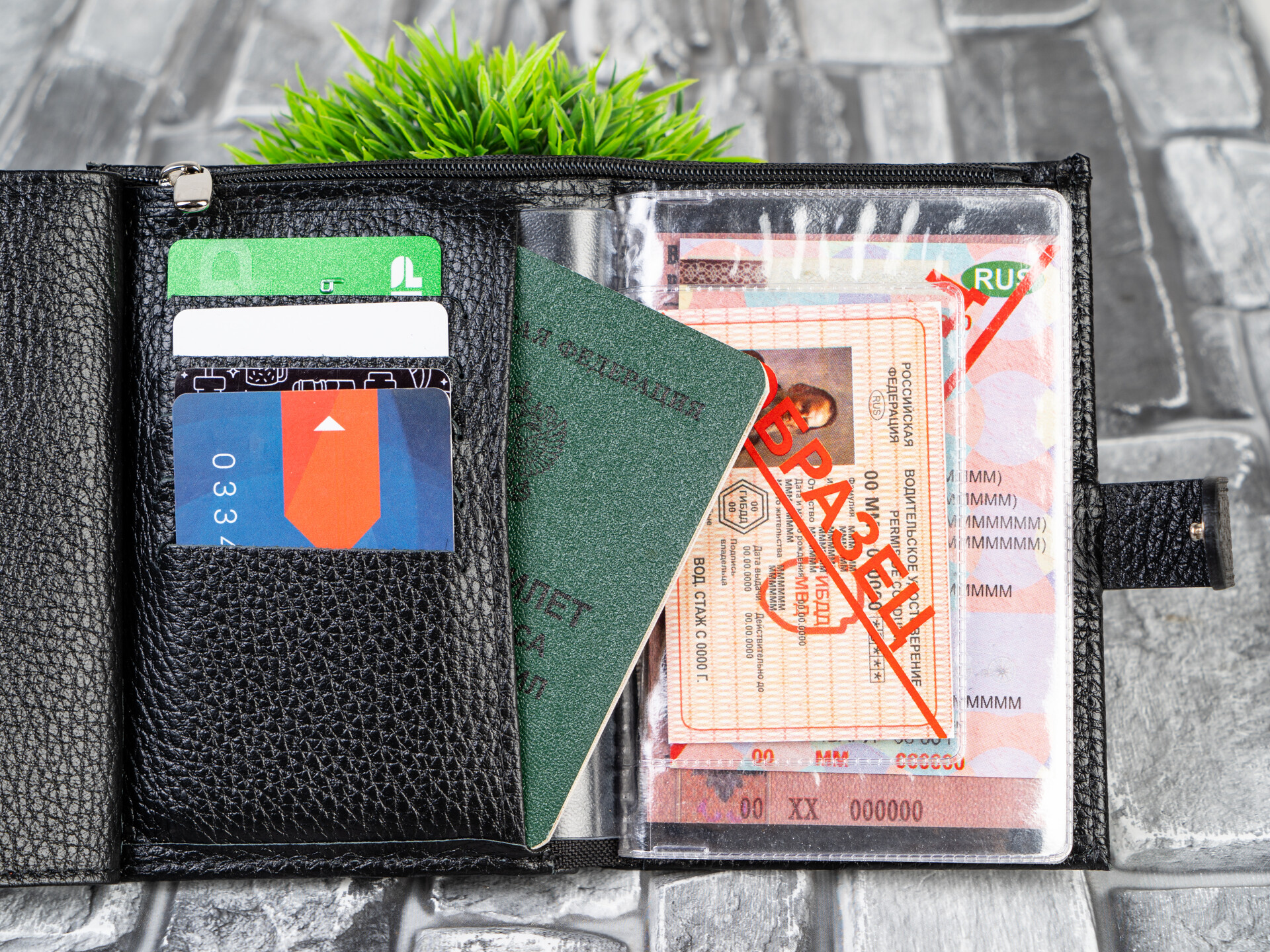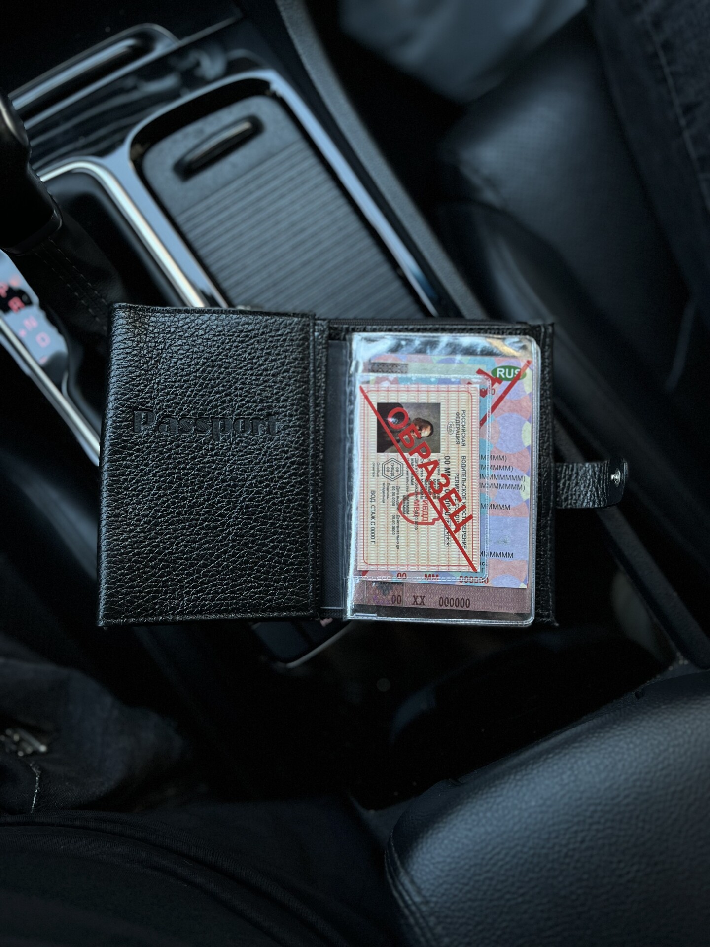 После паспорта расположен съемный вкладыш для всех видов автодокументов, включая в себя отсек под права, 4 отсека под стс, либо другие документы и отсек размером А5 под страховку! После вкладыша так же расположены 5 отсеков для пластиковых карт!
